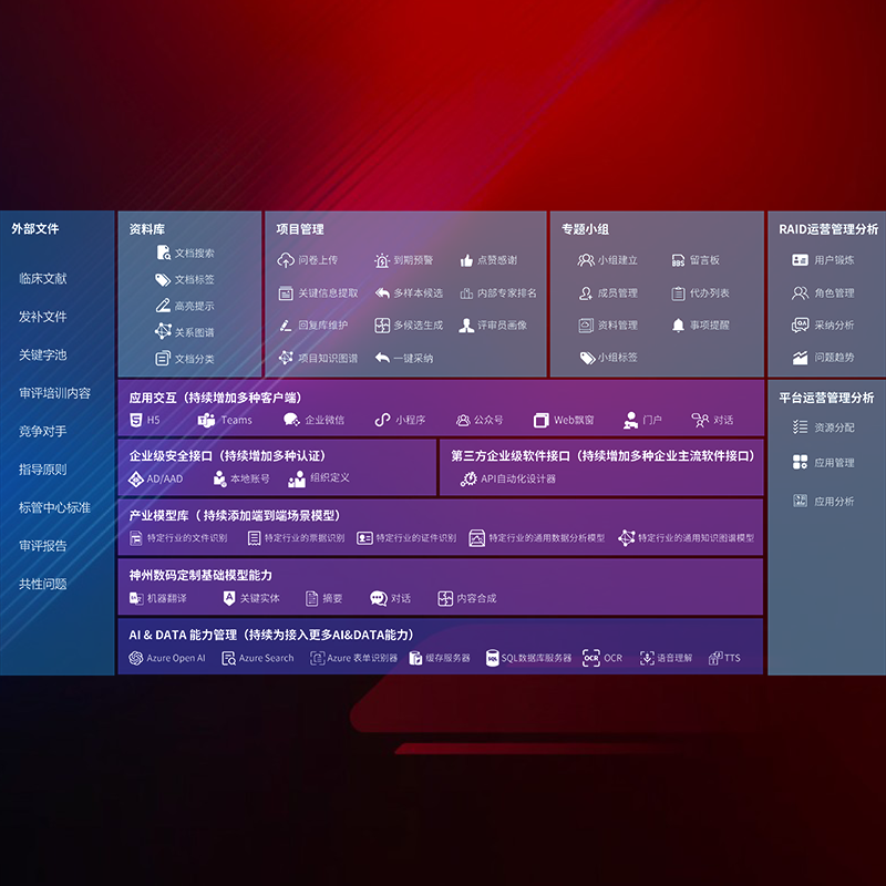 医疗器械产品上市前,,,,要熟悉严格与繁复评审标准,,,整理分析监管机构指导文件中的海量信息。。。企业急需一个智能化解决方案,,,,提升知识管理效率,,,,提高评审通过率,,,,以提升其市场竞争力。。